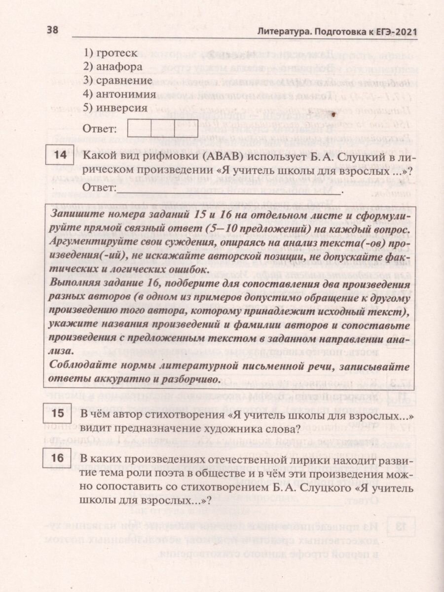 ЕГЭ-2021. Литература. 15 тренировочных вариантов по демоверсии 2021 года (Гарькавская Ольга Геннадьевна, Нестеренко Ольга Владимировна, Скрипка Татьяна Владимировна); Легион, 2020