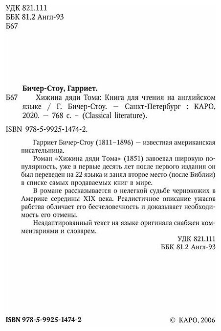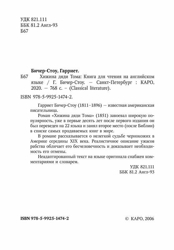Хижина дяди Тома (английский язык неадаптированный) (Beecher Stowe H.); Инфра-М, 2020