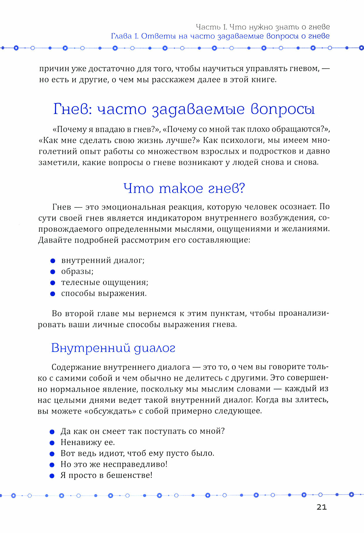 Перед вами подробное руководство по управлению гневом, написанное клиническими психологами-практиками с богатым опытом работы. Они помогли многим людям изменить деструктивное поведение и стать более уравновешенными и спокойными даже в ситуациях, когда хочется взорваться и разгромить все вокруг. Вы узнаете, как действовать, если у вас есть проблемы с выражением гнева, вы вспыхиваете, словно спичка, по любому поводу, склонны к громким приступам ярости или, наоборот, к тихой пассивной агрессии. Эта книга поможет разобраться в природе своих негативных эмоций и научиться направлять их в мирное русло вместо того, чтобы срываться на других людей или на самого себя, например, заедая злость или притупляя чувства с помощью алкоголя.