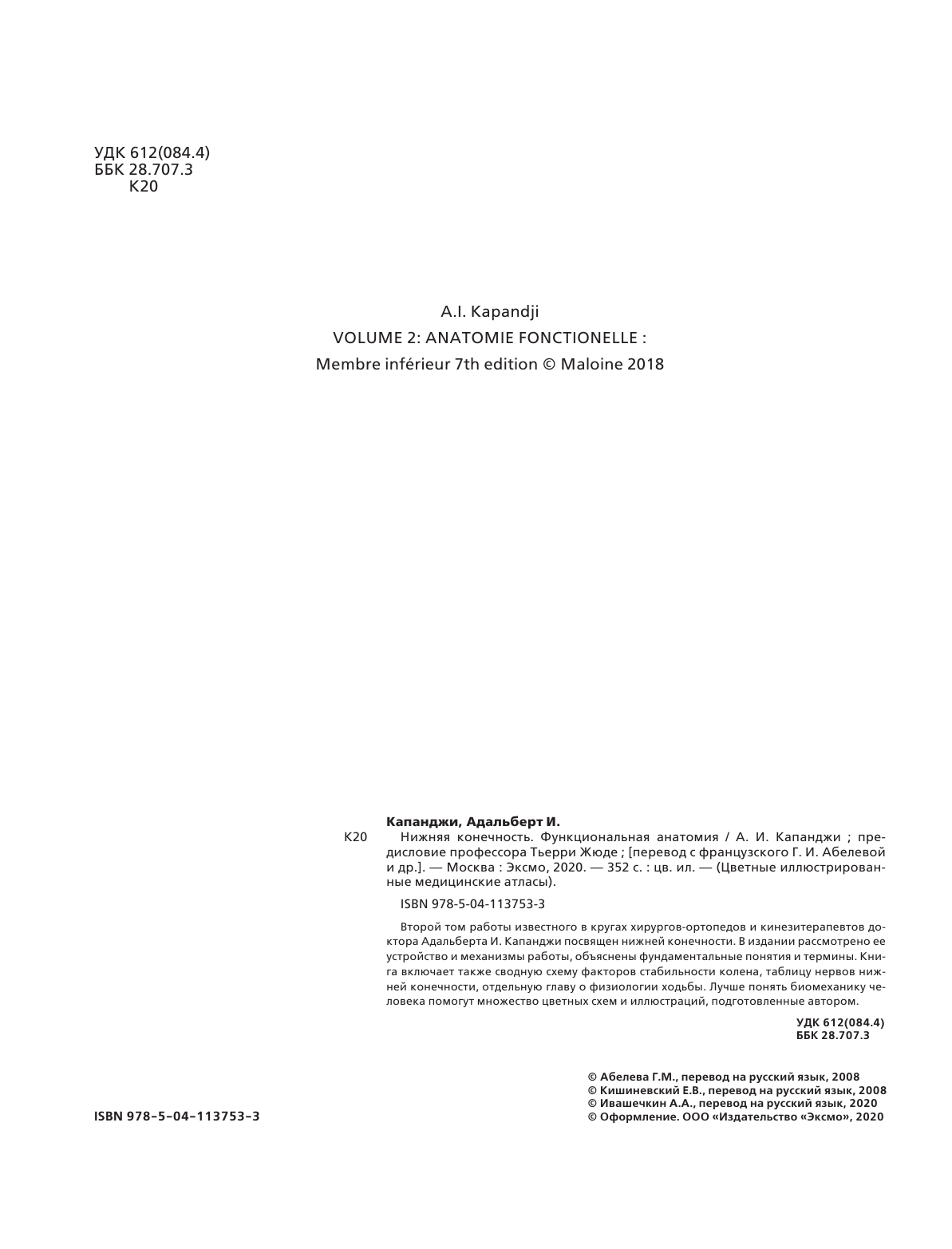 Нижняя конечность. Функциональная анатомия (обновленное издание) (Капанджи Адальберт Ибрагим); Эксмо, МЕДПРОФ, 2022