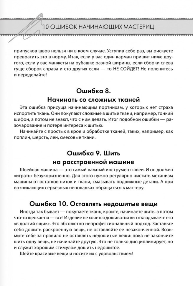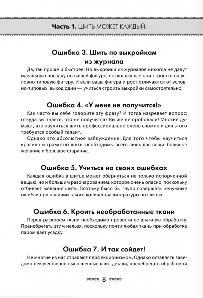 Это просто замечательная книга. Не так давно мне посоветовали её прочитать. Затем я случайно наткнулась на неё в магазине и всё таки решила купить. Знаете, Я не пожалела. В этой книге всё так чётко и понятно написано. Она подойдёт как новичкам, так и любителям шитья. Я взяла её и не пожалела. Всё просто супер. Всем советую! Спасибо!