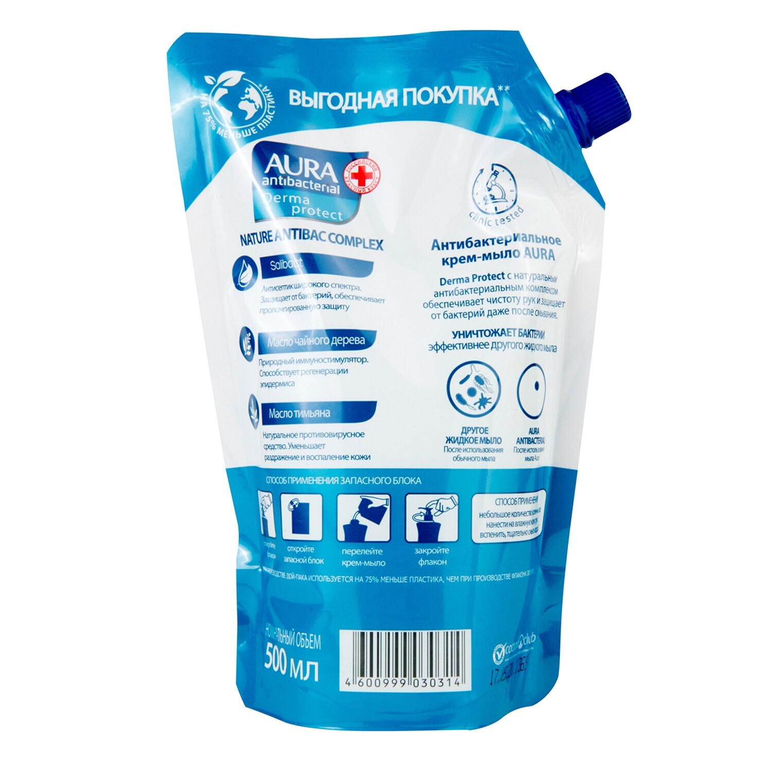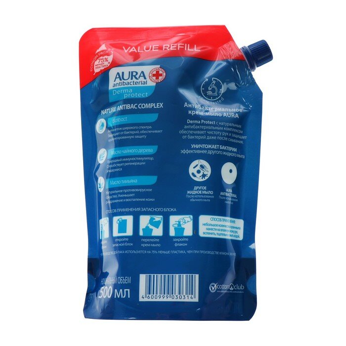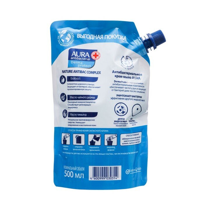 Крем-мыло жидкое Aura DermaProtect атибактериальное 500мл КОТТОН КЛАБ