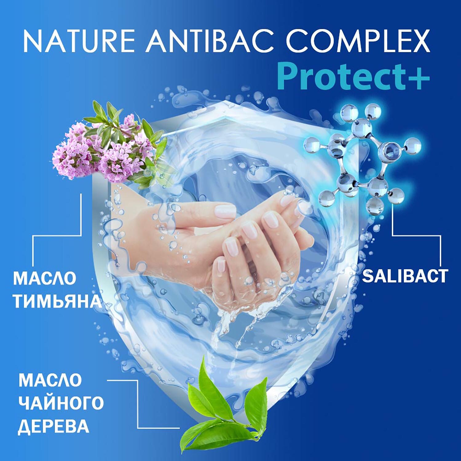 Антибактериальное крем-мыло с натуральным антибактериальным комплексом нежно очищает кожу рук, обеспечивая дополнительный уход и защиту от бактерий даже после смывания.
