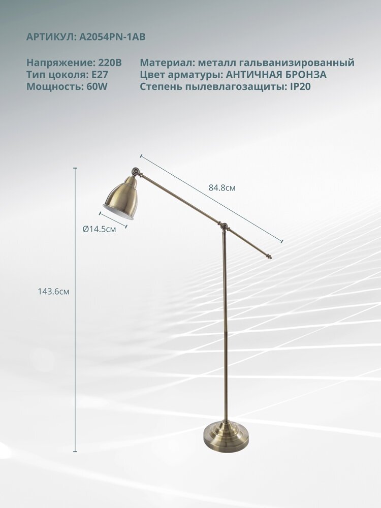 Напольный светильник ARTE LAMP A2054pn-1ab