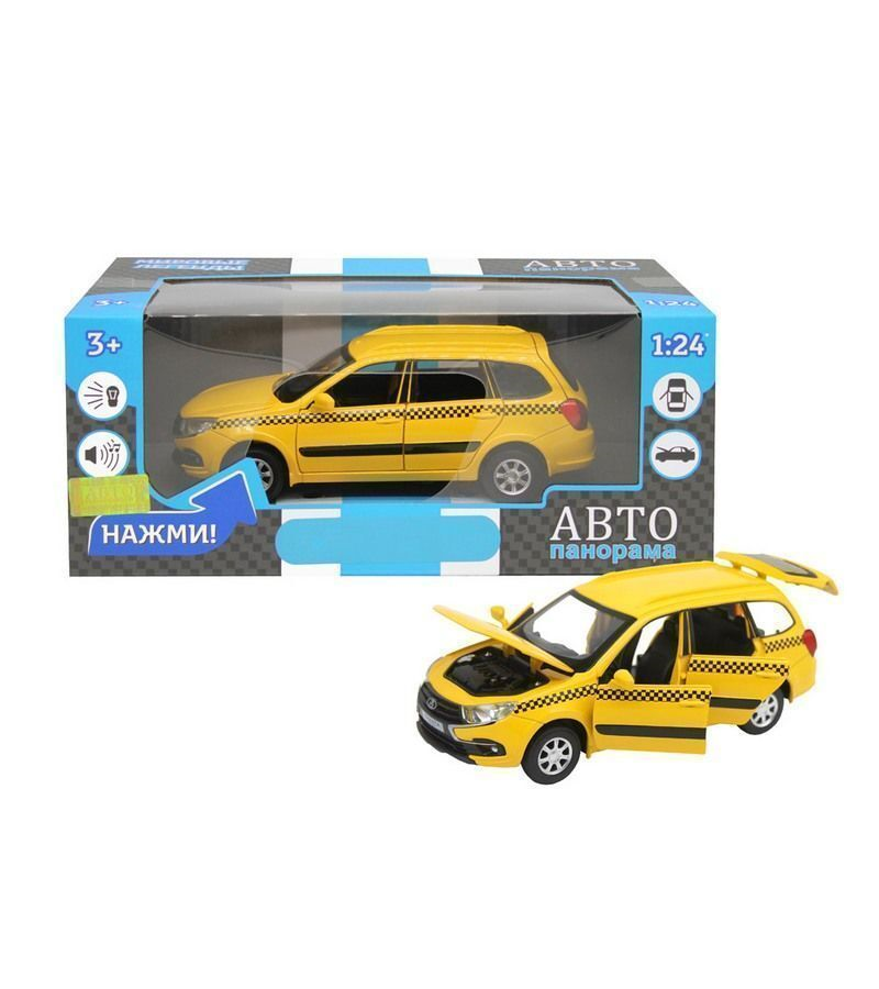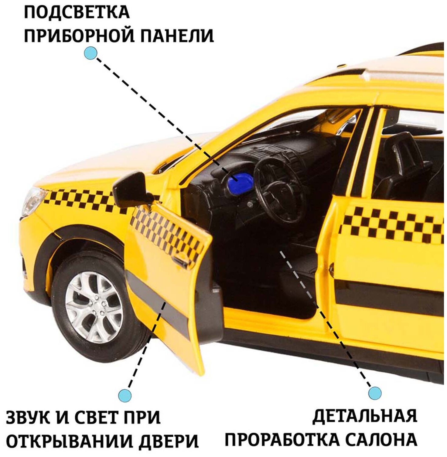 - АВТОПАНОРАМА/Лицензионная металлическая машинка LADA Vesta Такси,1:24, свет, звук, открываются двери