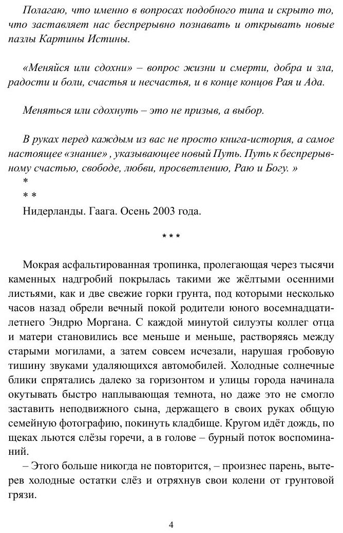 …абсолютно всё в нашем мире происходит не просто так. И наш Создатель об этом знает. Но знаем ли мы об этом? Осознаём ли мы действительно зачем и почему всё происходит так, как происходит? Полагаю, что именно в вопросах подобного типа и скрыто то, что заставляет нас беспрерывно познавать и открывать новые пазлы картины истины. «Меняйся или сдохни» – волнующий всех нас вопрос жизни и смерти, добра и зла, радости и боли, счастья и несчастья, и в конце концов Рая и Ада. Меняться или сдохнуть – это не призыв, а выбор. В руках перед каждым из вас не просто книга-история, а самое настоящее «знание», указывающее новый Путь.