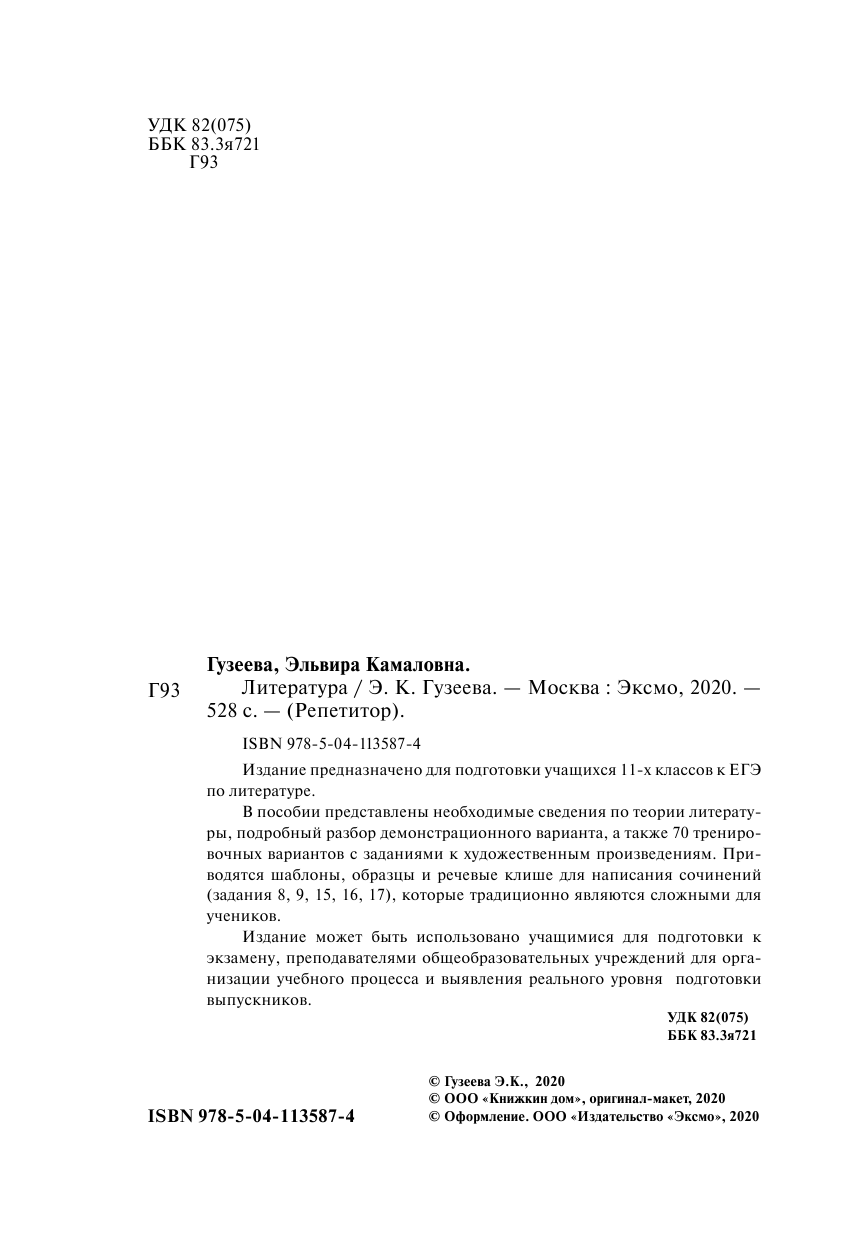 Книга: Литература (Гузеева Эльвира Камаловна); ООО "Издательство "Эксмо", 2020