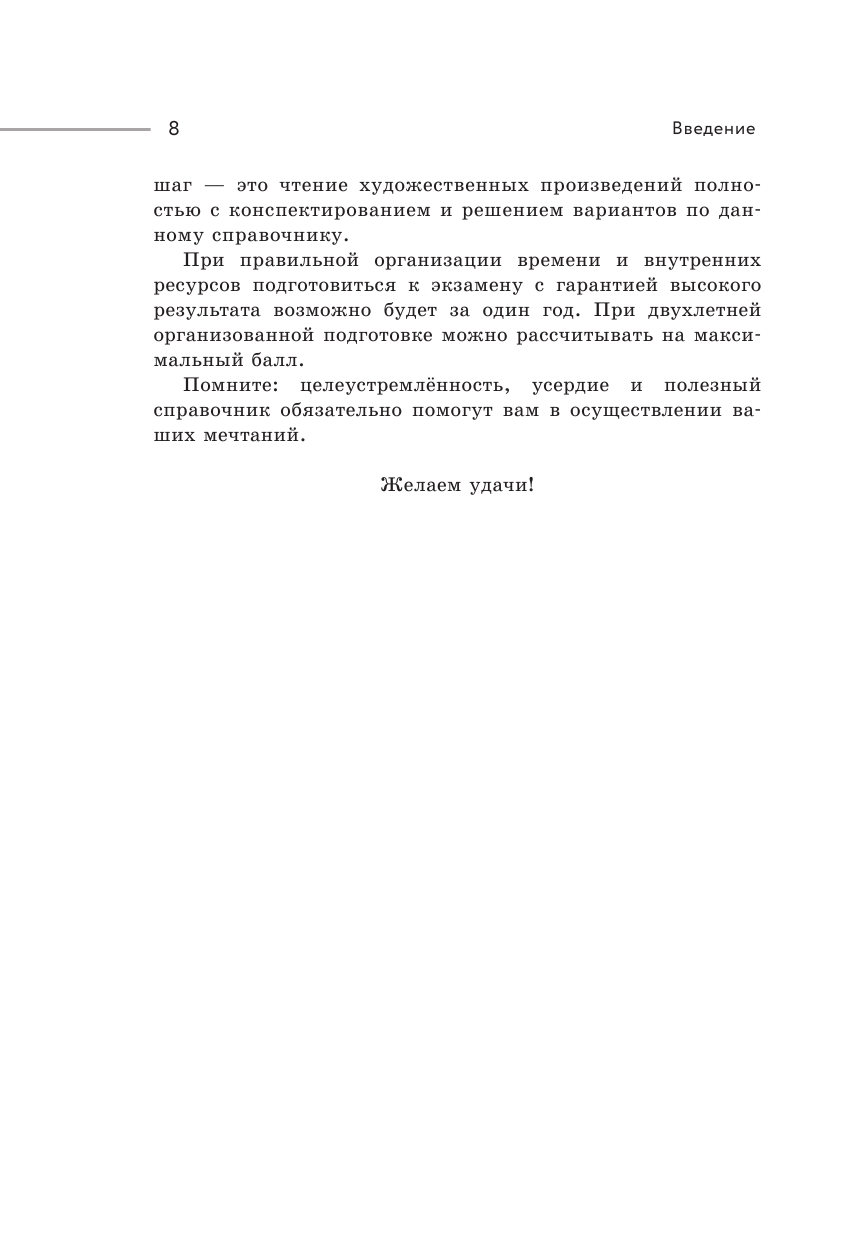 Издание предназначено для подготовки учащихся 11-х классов к ЕГЭ по литературе. В пособии представлены необходимые сведения по теории литературы, подробный разбор демонстрационного варианта, а также 70 тренировочных вариантов с заданиями к художественным произведениям.Приводятся шаблоны, образцы и речевые клише для написания сочинений (задания 8, 9, 15, 16, 17), которые традиционно являются сложными для учеников. Издание может быть использовано учащимися для подготовки к экзамену, преподавателями общеобразовательных учреждений для организации учебного процесса и выявления реального уровня подготовки выпускников.