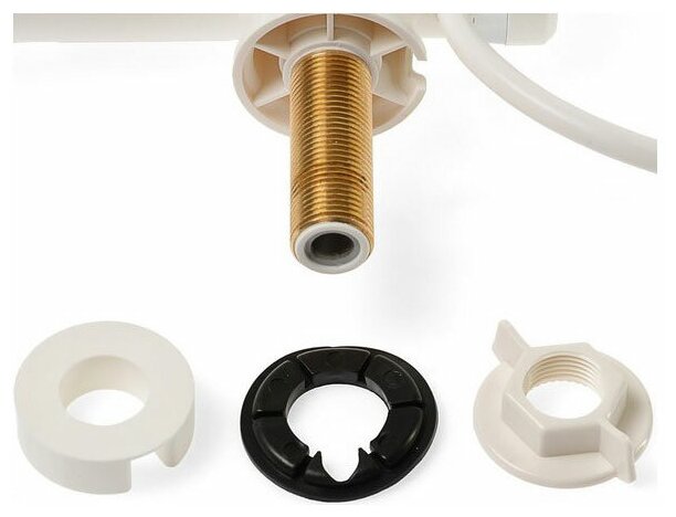 Кран - 1 шт.Поворотный излив с аэратором - 1 шт.Уплотнительная прокладка - 1 шт.Пластиковое упорное кольцо - 1 шт.Пластиковая гайка - 1 шт.Руководство по монтажу и эксплуатации - 1 шт.Упаковка - 1 шт.