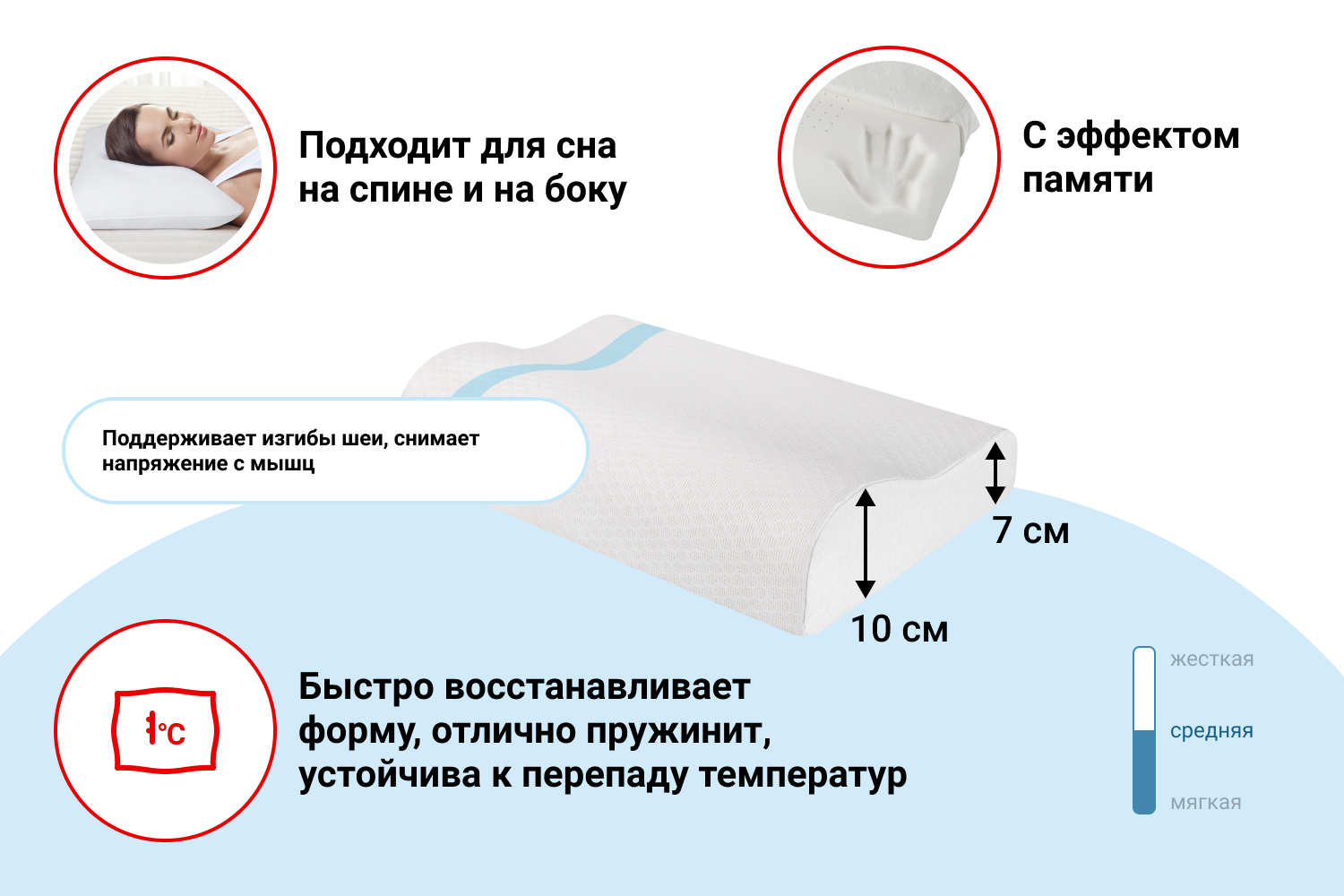 | Назначение | для сна на боку; для сна на животе; для сна на спине |