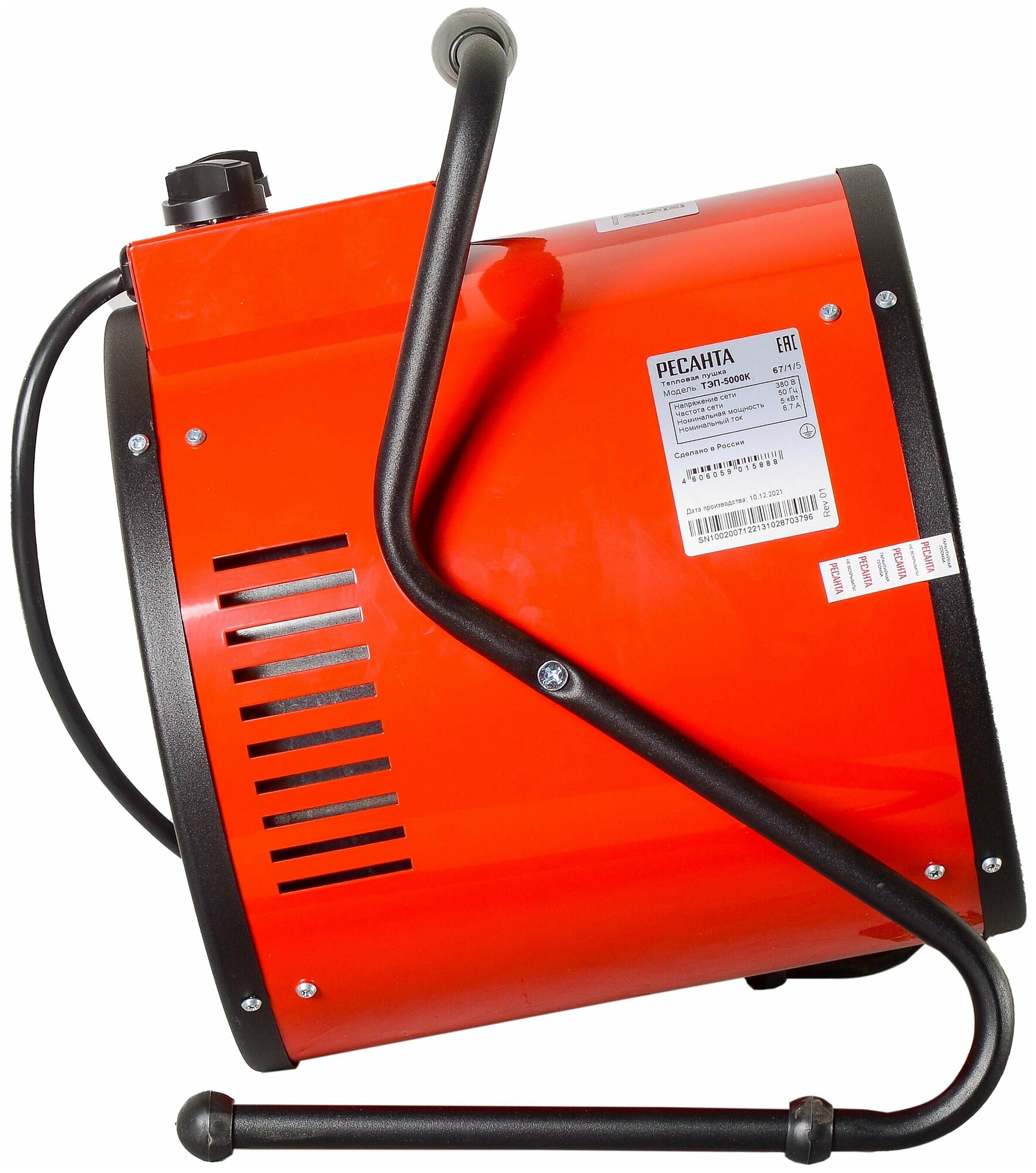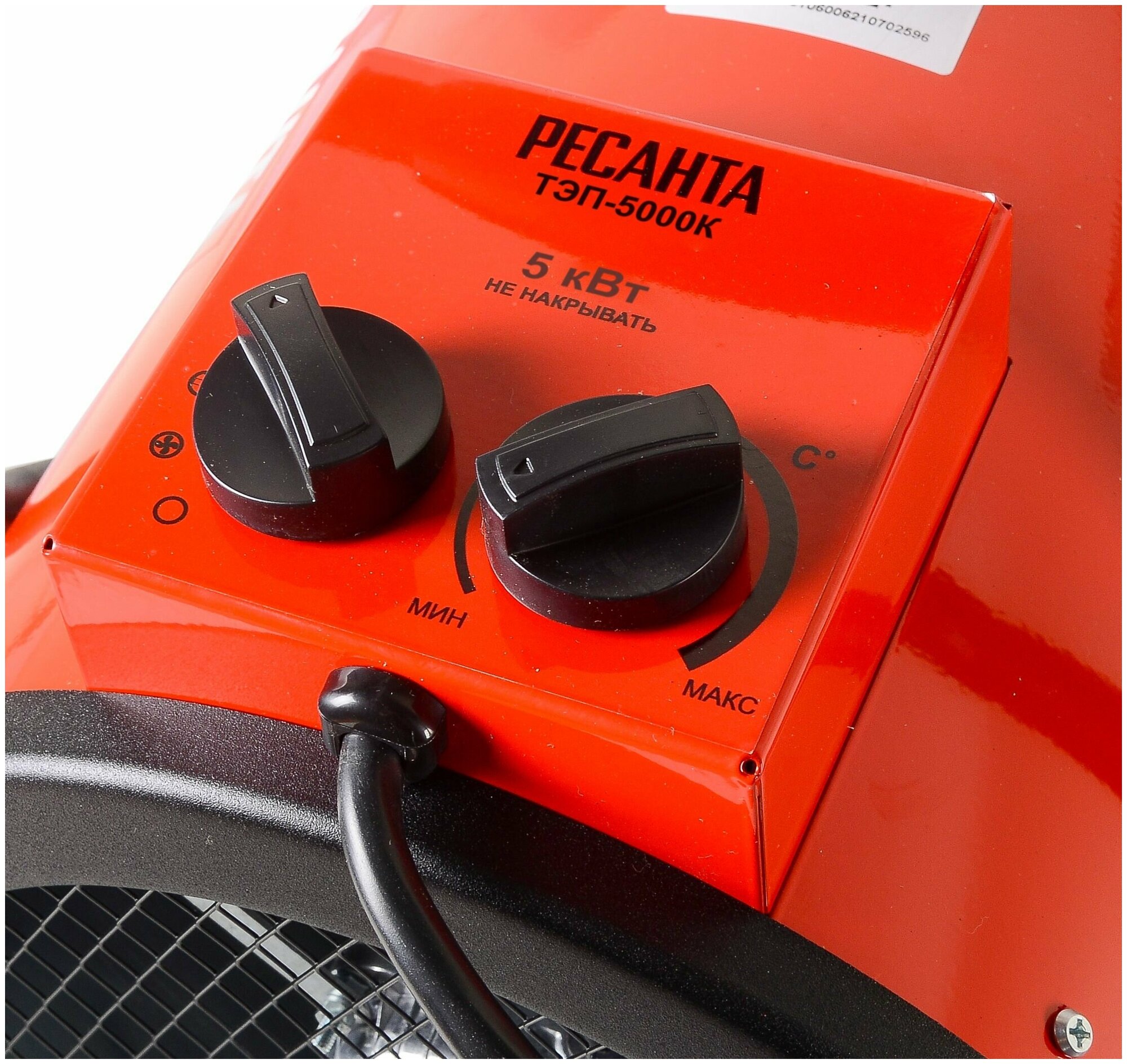 Перед выключением нужно переводить на режим вентилятора без нагрева, чтобы спираль остыла, иначе прибор перегревается от остаточного нагрева спирали. Вентилятор почти минуту остужает спираль. Шнур в комплекте короткий и без вилки, но обычная вилка и не подойдет, т.к. мощность высокая (использовал вилку для электроплиты на 32 ампера). В инструкции по эксплуатации и на сайте завода пишут, что данная модель не оснащена термостатом, но на самом деле он есть и работает. Рукоятка термостата рядом с ручкой выбора мощности нагрева.