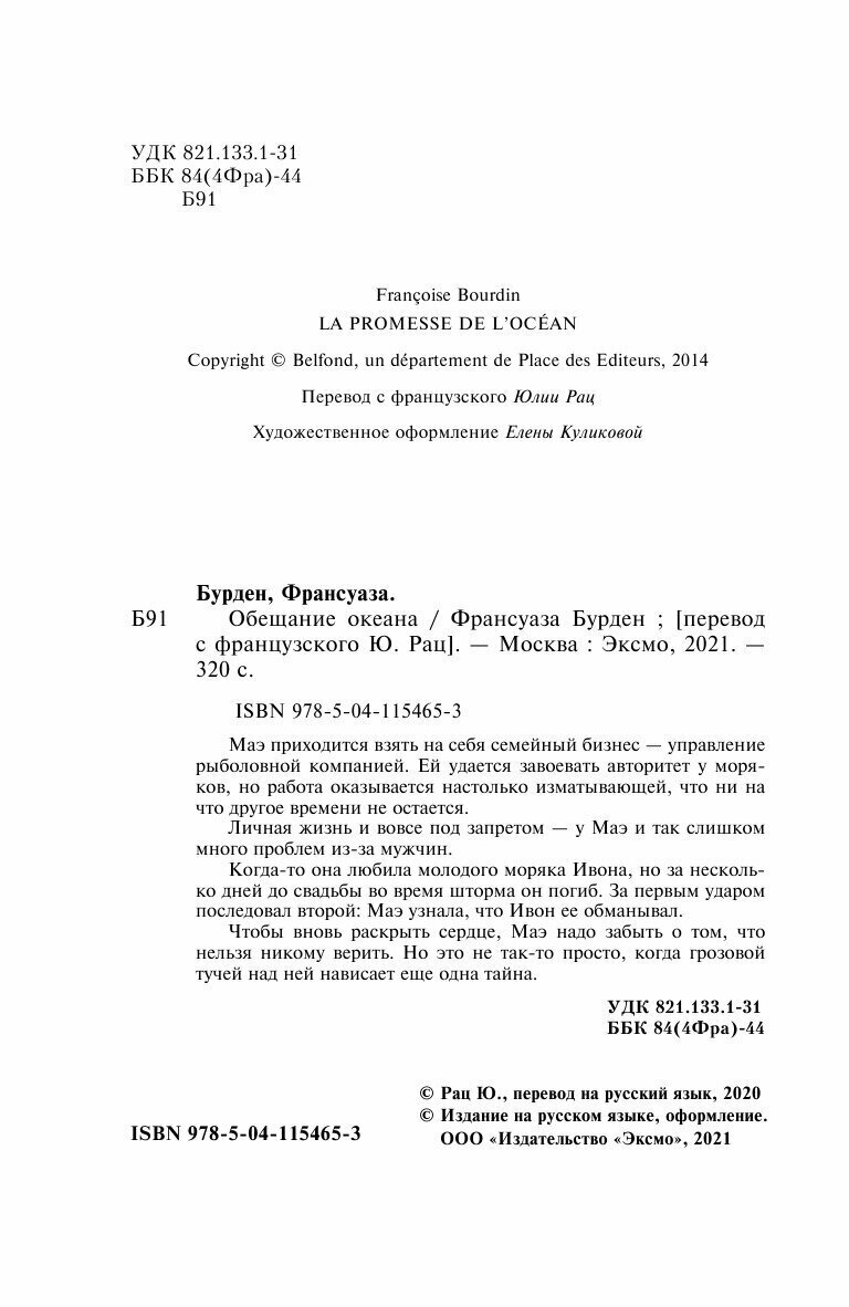 Книга: Обещание океана (Франсуаза Бурден); Эксмо, Inspiria, Редакция 1, 2020