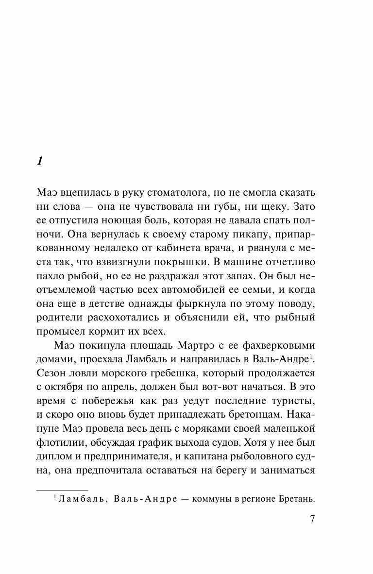 Роман понравился. Как сообщалось в аннотации, эта история о любви. Оба главных персонажа имели в прошлом сильные чувства и надежды, с которыми пришлось расстаться кому-то трагически, кому-то после разочарования. Но время идет и жизнь не стоит на месте. Мне показалось, что история жизненная, реалистичная. Порадовало, что не было и намека на «радужную» тему. Хорошо показаны характеры героев, они понятны. Оба ответственные на работе и в жизни, им не просто оказалось довериться друг другу. Суровое море у берегов Бретани, нелегкий труд рыбаков, маленький городок дополнили сюжет яркой картинкой. В противовес главной героини, эпизоды с бывшей соперницей вызвали некоторую брезгливость и огромное сочувствие к судьбе ребенка.