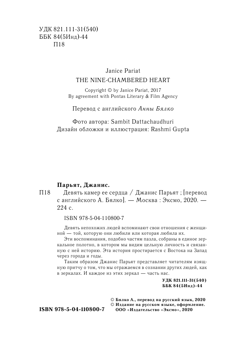 Книга: Девять камер ее сердца (Джанис Парьят); Эксмо, Inspiria, Редакция 1, 2020