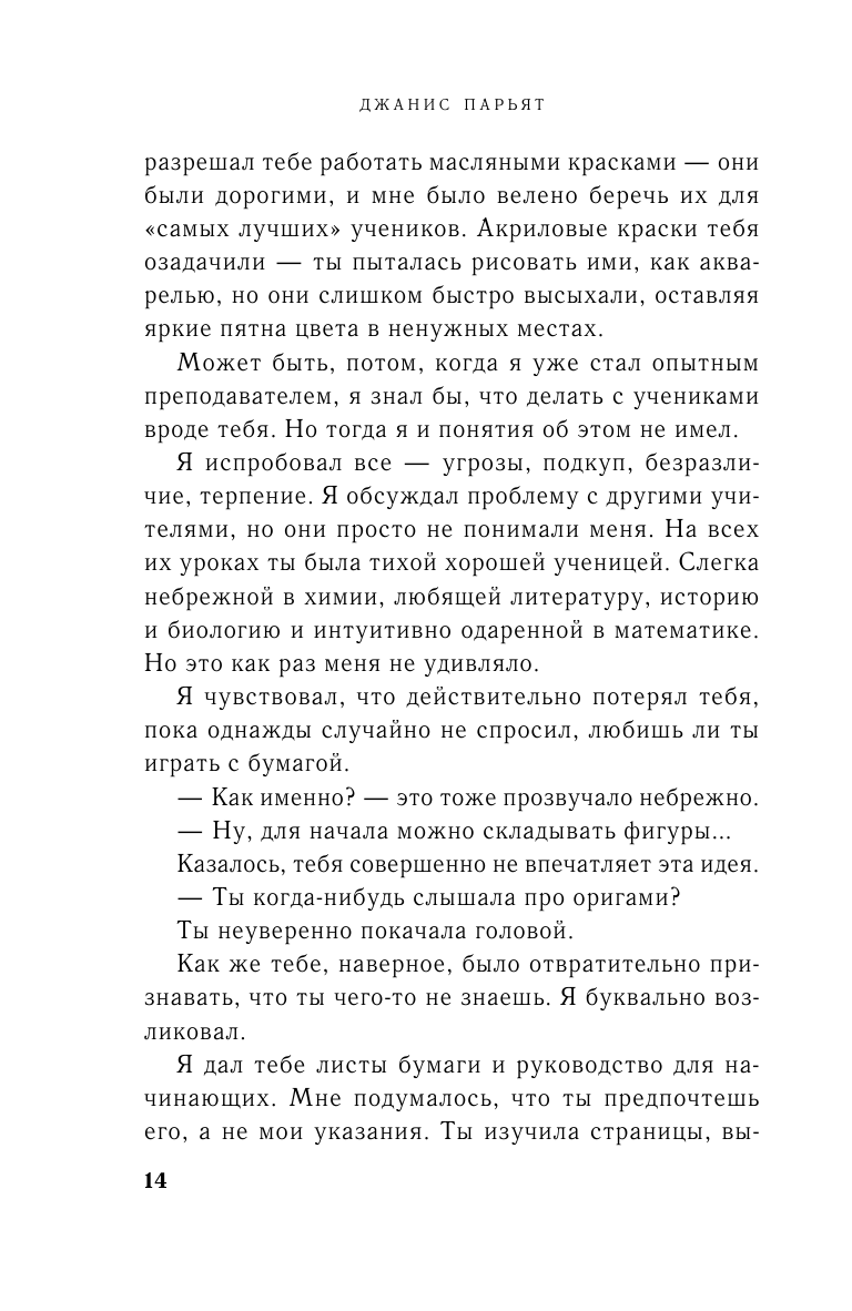 Таким образом Джанис Парьят представляет читателям изящную притчу о том, что мы отражаемся в сознании других людей, как в зеркалах. И каждое из этих зеркал – часть нас.