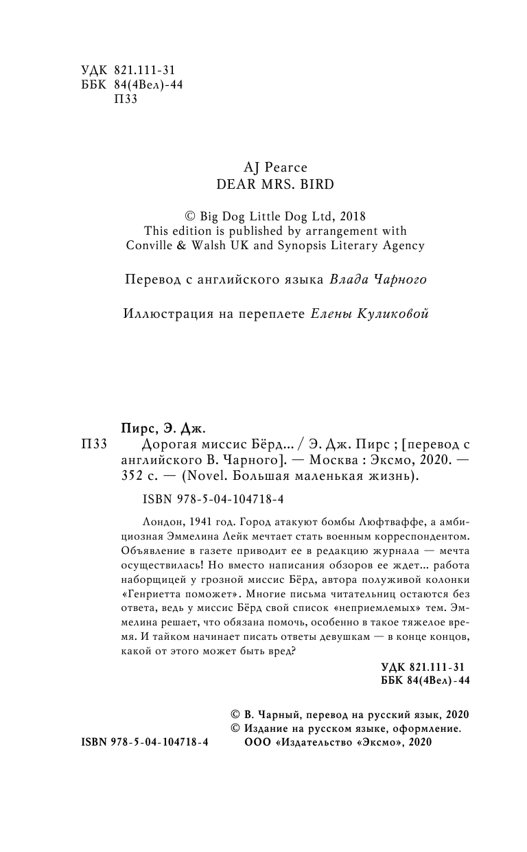 Книга: Дорогая миссис Бёрд... (Э. Дж. Пирс); Эксмо, Inspiria, Редакция 1, 2020