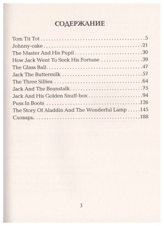 В книгу вошли любимые многими сказки, такие как "How Jack Went To Seek His Fortune", "The Glass Ball", "Puss In Boots", "The Story Of Aladdin And The Wonderful Lamp" и другие.