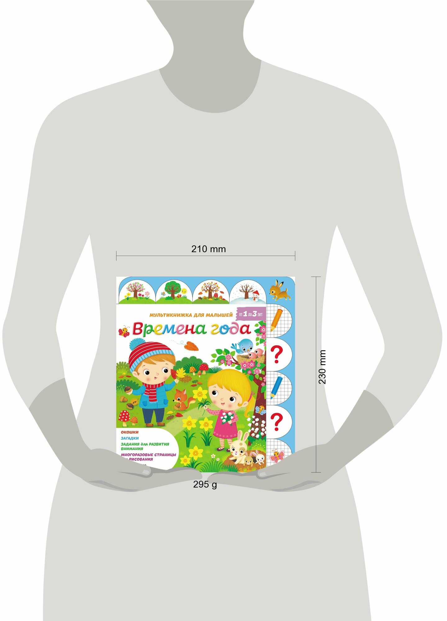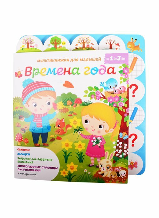 Вы держите в руках первую мультикнижку для малышей! Её можно читать, рассматривать картинки, задавать вопросы ребёнку и искать ответы под окошками. Так ваш малыш, играя, сформирует представления о временах года. А ещё в этой книге есть простые загадки в стихотворной форме и специальные страницы, на которых можно рисовать гелевой ручкой или фломастером на водной основе. Мультикнижку "Времена года" можно рекомендовать самым юным читателям, начиная с года, потому что она безопасная и долговечная, благодаря скруглённым углам и плотному картону.