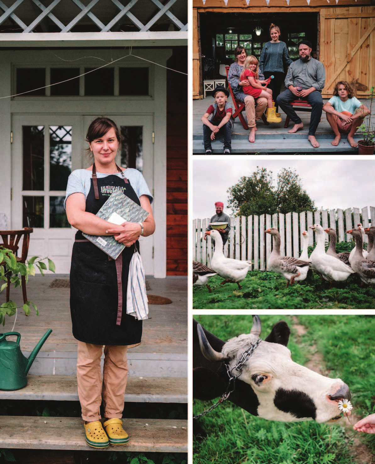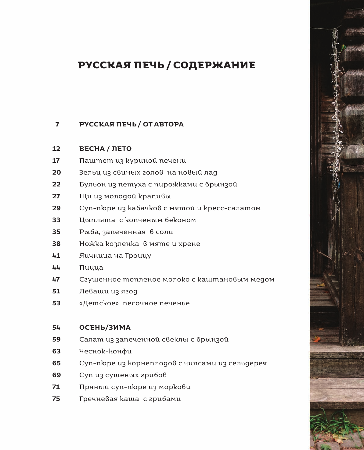 Вы будете удивлены, но в русской печи можно приготовить как блюда актуальной кухни — например, ростбиф или конфи из утки, — так и деревенские специалитеты типа бульона из петуха и с пирожками с брынзой или зельца из свиных голов. Любители здорового питания откроют для себя ассорти из запеченных корнеплодов, суп-пюре из кабачков с мятой и кресс-салатом и песто из чесночных стрелок.