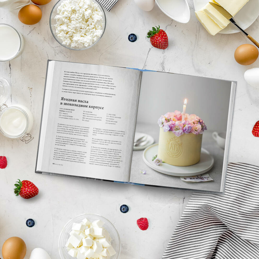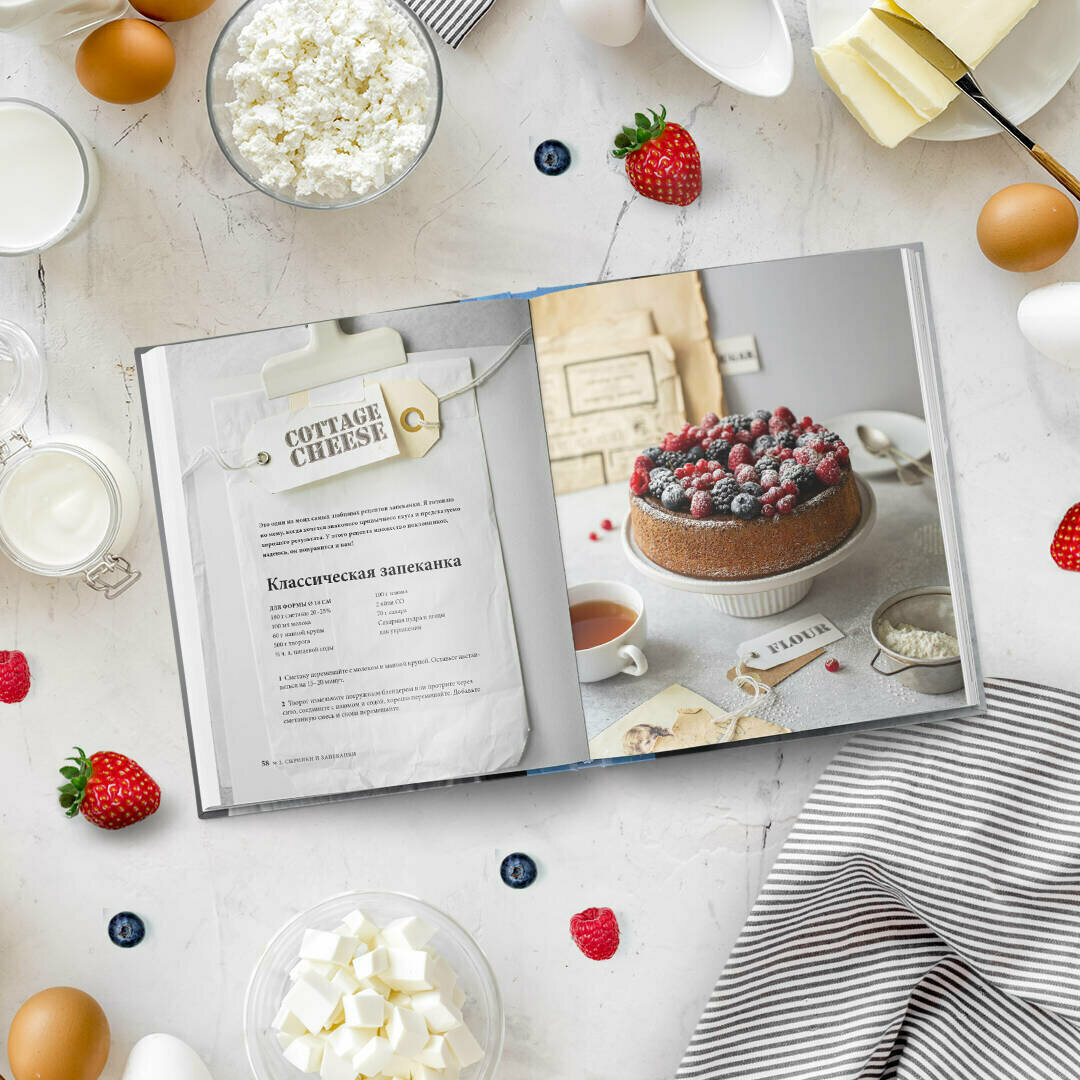 Книгой довольна! Это та самая книга, которую можно взять на лето в деревню или если есть дача, загородный дом неподалёку от посёлка. Когда есть в доступе настоящие качественные творог, молоко, сливки, яйца, но ума не можешь приложить, что из них готовить, чтоб не был каждый день "день сурка" с одинаковым меню. На этом делаю акцент, т.к. в рецептах мало ингредиентов и нет редких. В книге нет десятка вариаций торта с твороженым кремом, т.к. подобные рецепты должны быть в книге про торт (это тоже радует). Всё выдержано в одном стиле, в одной идее, сложных рецептов нет. Есть сложное оформление, например, тирамису в шоколадном стаканчике. Но никто не мешает сделать то же самое в креманке и не заморачиваться с шоколадным стаканчиком.