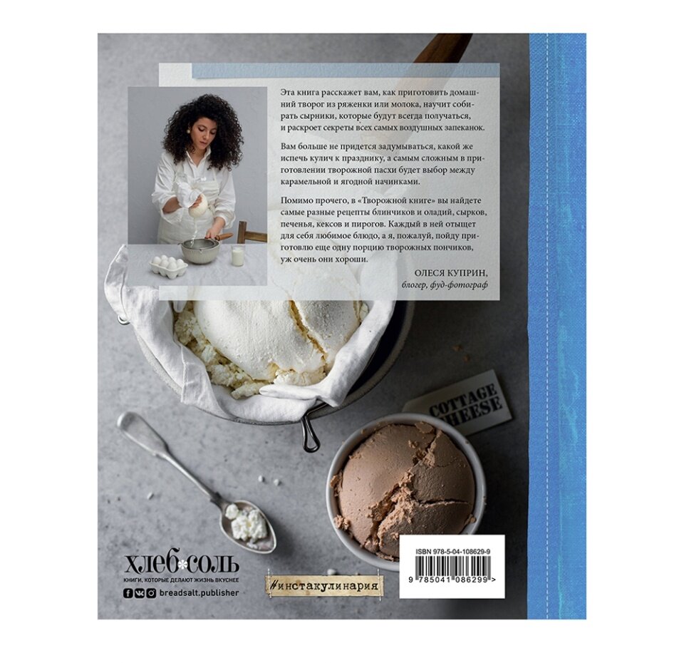У меня три книги Олеси Куприн: "Будешь торт?", "Шоколадная" и теперь "Творожная" - каждая из них хороша по-своему. Данная книга очень лаконичная, серые страницы приятны глазу, нет пестроты - эстетическое удовольствие, когда берёшь в руки книгу.