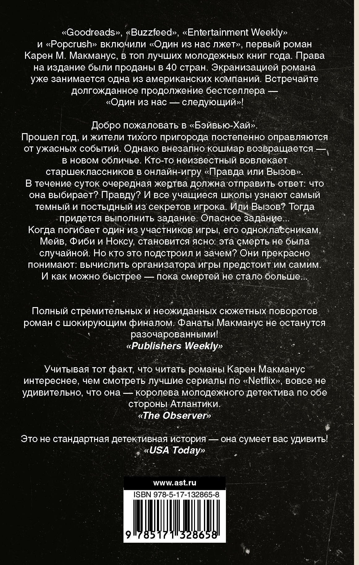 Книга: Один из нас - следующий (Карен М. Макманус); Издательство АСТ, 2020