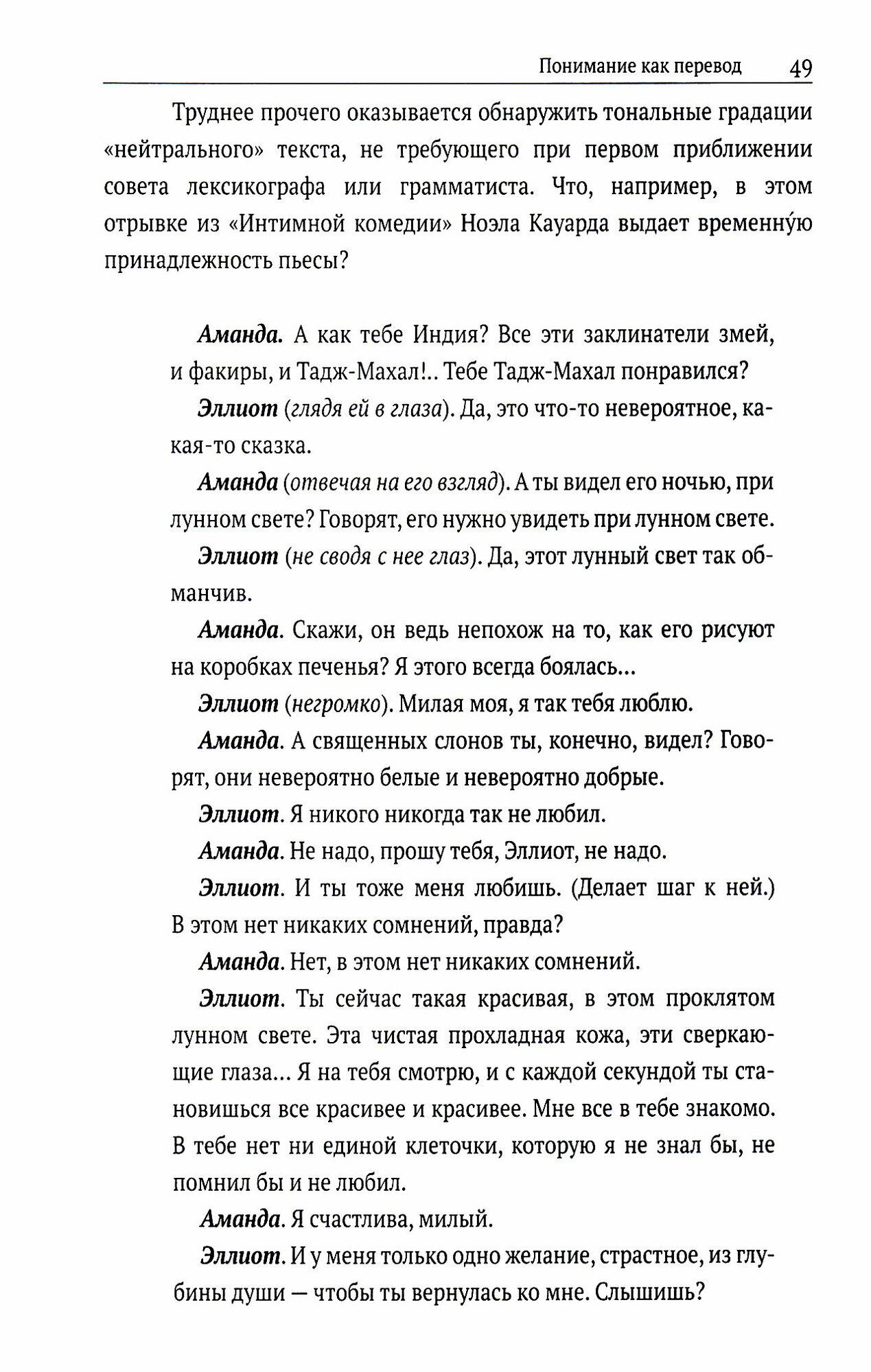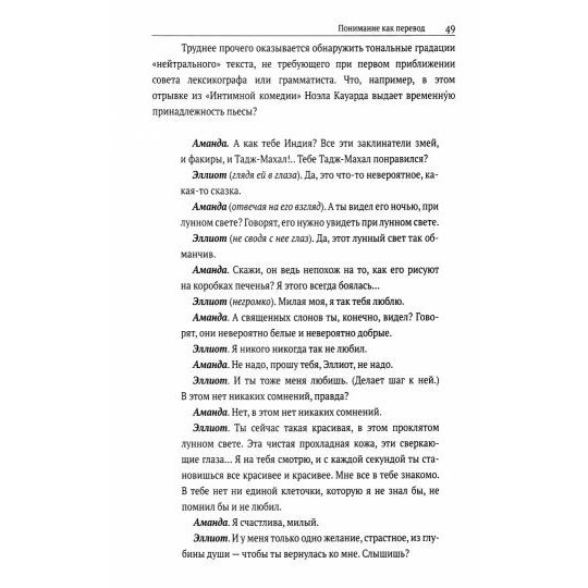 Книга Джорджа Стайнера посвящена общекультурным вопросам языка и перевода. Она написана ученым, исповедующим широкий гуманитарный интерес. Поэтому и вопросы, которые в ней рассматриваются, не являются узко лингвистическими или переводческими. Эта книга – размышление о природе понимания как такового. Книга читается с интересом, ставит много вопросов, содержит познавательные примеры. Большим минусом является увеличенный шрифт текста, крайне затрудняющий чтение и восприятие.