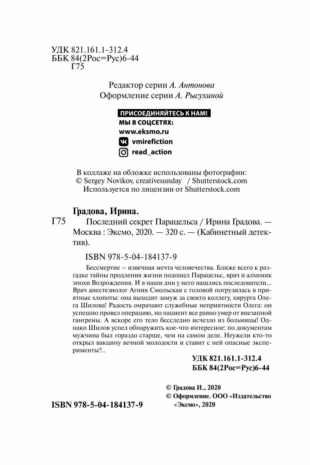 Последний секрет Парацельса (Ирина Градова); Эксмо, Редакция 1, 2020