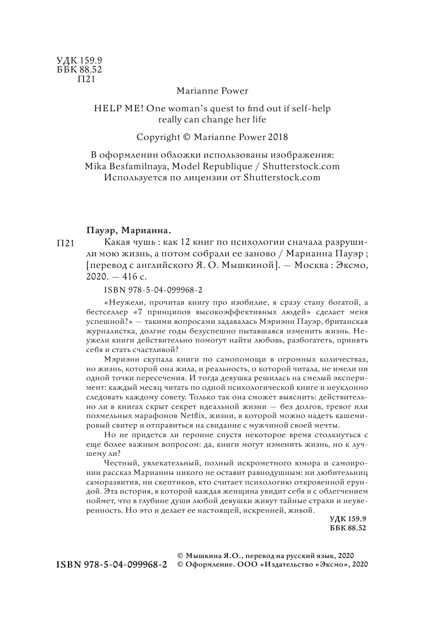 – такими вопросами задавалась Мэриэнн Пауэр, британская журналистка, долгие годы безуспешно пытавшаяся изменить жизнь. Неужели книги действительно помогут найти любовь, разбогатеть, принять себя и стать счастливой?