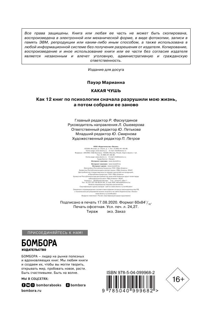 Какая чушь. Как 12 книг по психологии сначала разрушили мою жизнь а потом собрали ее заново (Мэриэнн Пауэр); Эксмо, БОМБОРА, 2020
