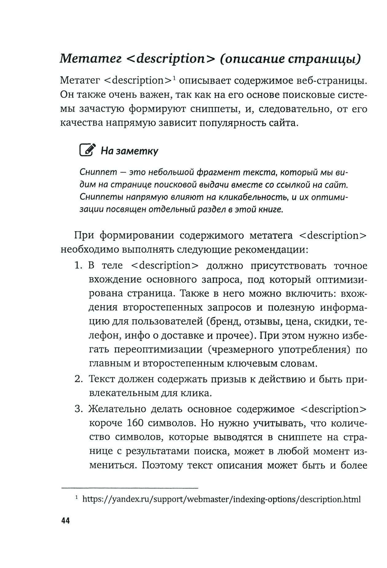 В тексте изложены принципы работы поисковых систем, результаты исследований экспертов и авторские наработки по продвижению сайтов. При этом книга задумывалась именно как практическое руководство по поисковой оптимизации, поэтому материал представлен в максимально простой форме, а все рекомендации приведены по принципу "бери и делай".