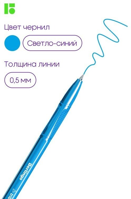 Шариковая ручка Berlingo Tribase Sky со светло-синими чернилами и вентилируемым колпачком, который обеспечивает безопасность при использовании детьми. Эта ручка - стильный аксессуар для работы или учёбы. Пластиковый клип позволит разместить ручку на ежедневниках или блокнотах. Эргономичная трёхгранная зона захвата с рифлением препятствует скольжению пальцев. Качественные чернила обеспечивают чёткое и ровное письмо. Диаметр пишущего узла составляет 0,7 мм, благодаря чему ручка прекрасно подходит для любого стиля письма. Толщина линии письма составляет 0,5 мм, а длина линии письма составляет 1200 метров.• Цвет чернил: светло-синий;• Толщина линии письма: 0,5 мм;• Длина линии письма: 1200 м;• Цвет корпуса: голубой.