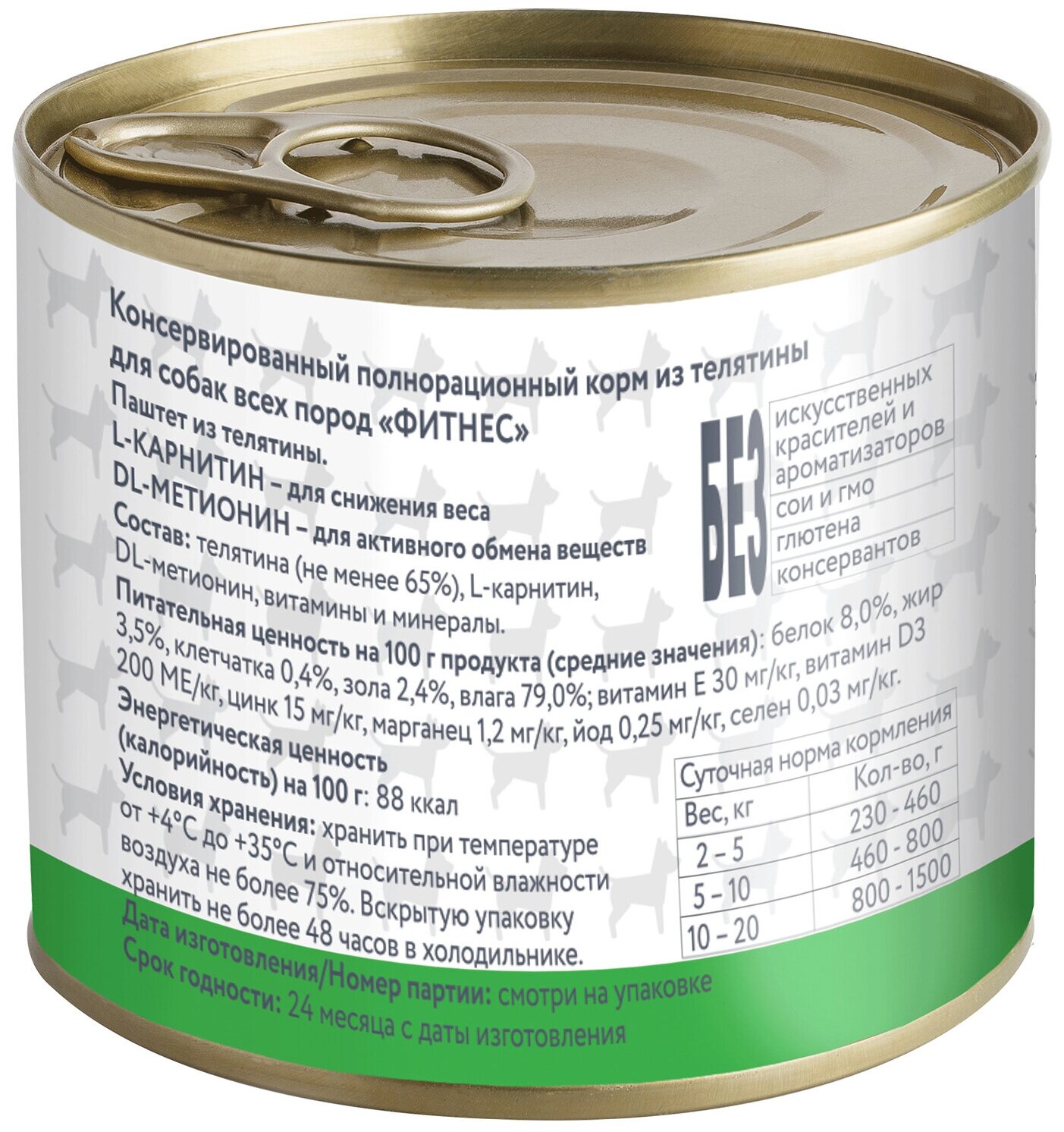 | Состав | Состав Белок 8,0%, Жир 3,5%, Клетчатка 0,4%, Зола 2,4%, Влага 79,0%, Витамин Е 30 мг/кг, витамин D3 200 МЕ, цинк 15 мг/кг, марганец 1,2 мг/кг, йод 0,25 мг/кг, селен 0,03 мг/кг. Ингредиенты Состав: телятина (не менее 65%), L-карнитин, DL-метионин, витамины и минералы. |