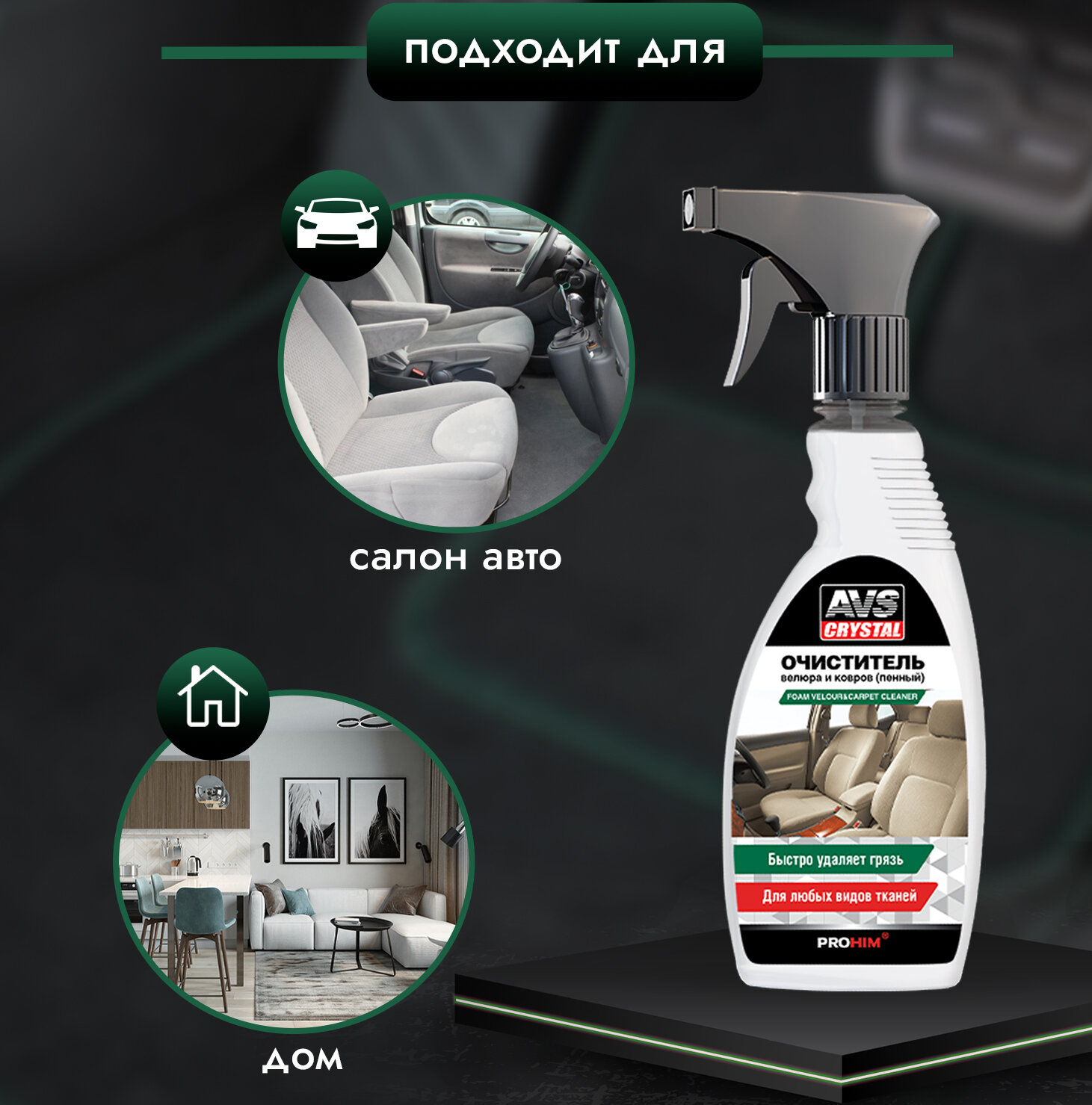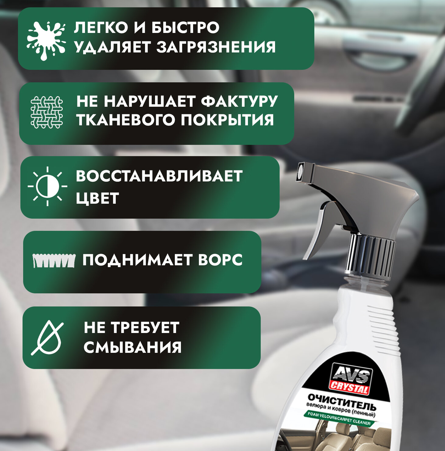 - Очиститель велюра и обивки салона пенный (аэрозоль) 520 мл AVS AVK-029