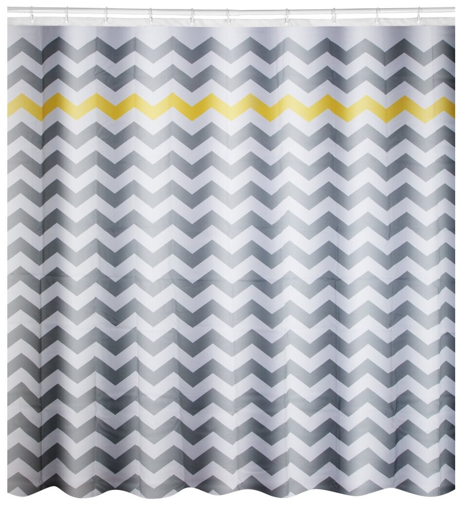 Шторка изготовлена из плотного полиэстера. Полотна отличаются высочайшими качественными характеристиками: высокими показателями износостойкости, прочности, цветостойкости и цветопередачи. Применяется в ванных комнатах. Размер: 240 x 200 см; Материал: полиэстер; Кольца в комплекте: да.