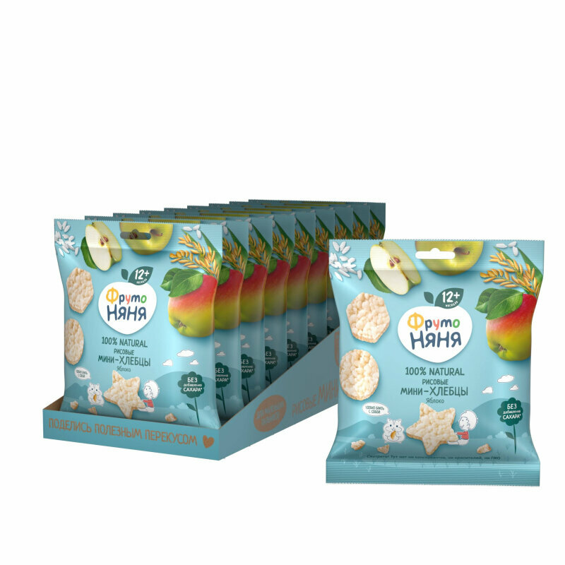Мини-хлебцы ФрутоНяня Рисовые с яблоком и пребиотиком 30г