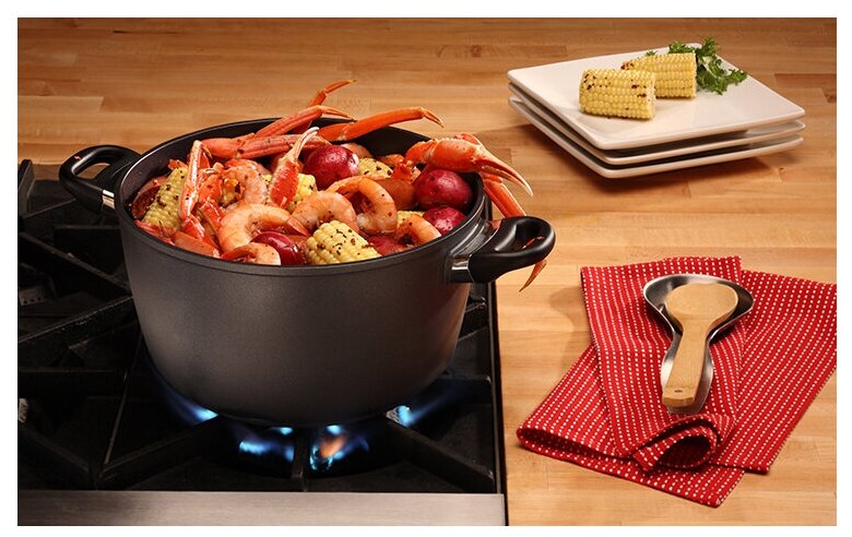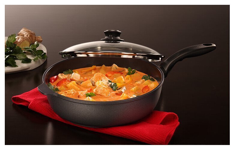Комплектация: сковорода 20 см, сковорода с крышкой 24 см, ковш с крышкой 18 см 2 л, ковш с крышкой 20 см 3 л, сотейник 28 см 4.2 л, кастрюля с крышкой 28 см 8 л. 59х38х26.5 см.