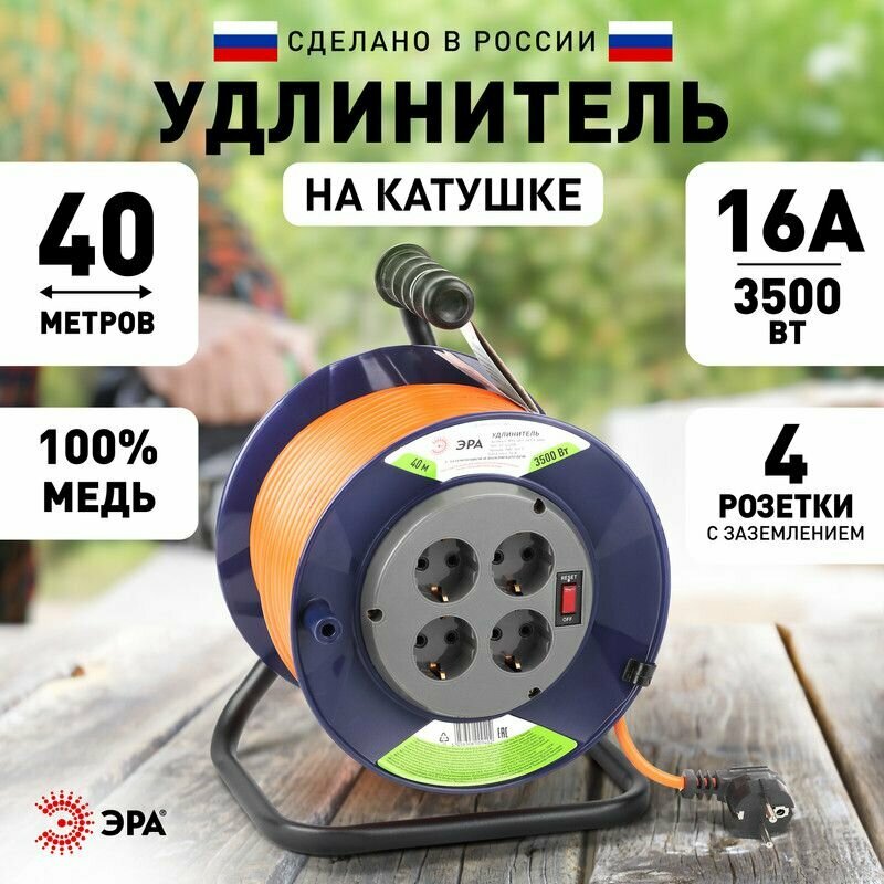 Сервис сравнения цен СкидкаГИД предлагает сравнить цены на товар «Удлинитель силовой Эра RPx-4es-3x1.5-40m (Б0046836) 3x1.5кв.мм 4розет. 40м ПВС 10A катушка черный»