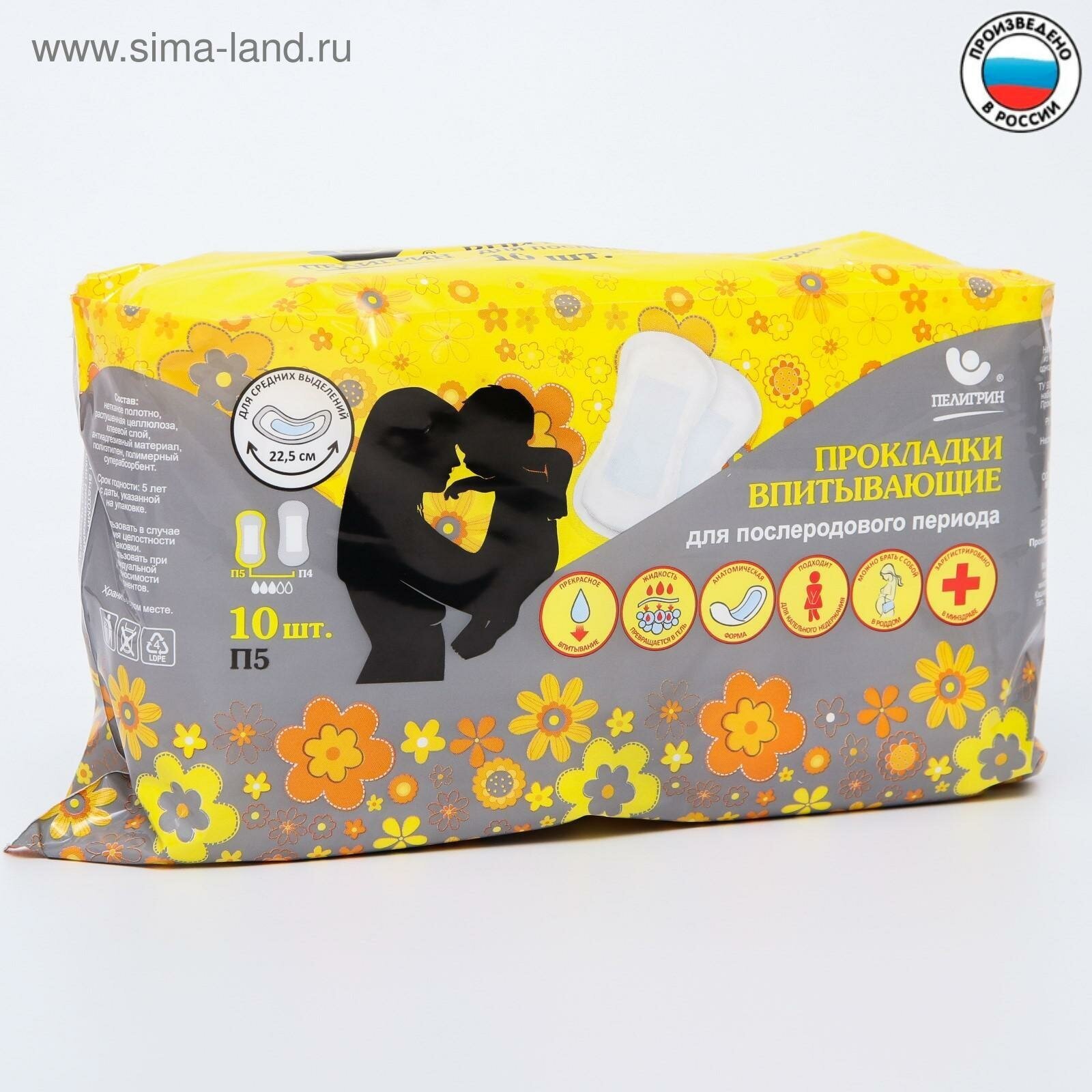 Послеродовые прокладки "Пелигрин" - идеальное средство гигиены в период ожидания малыша и сразу после родов. Прокладки "Пелигрин" П5 предназначены для среднего количества выделений, рекомендуется использовать их примерно с третьего дня после родов, а для первых дней выбрать прокладки большего размера - "Пелигрин" П4.