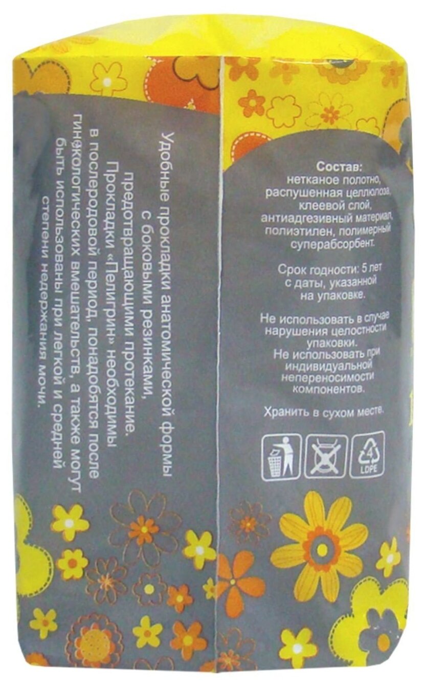 Уникальная анатомическая форма прокладок "Пелигрин" с боковыми резинками предотвратит протекание.