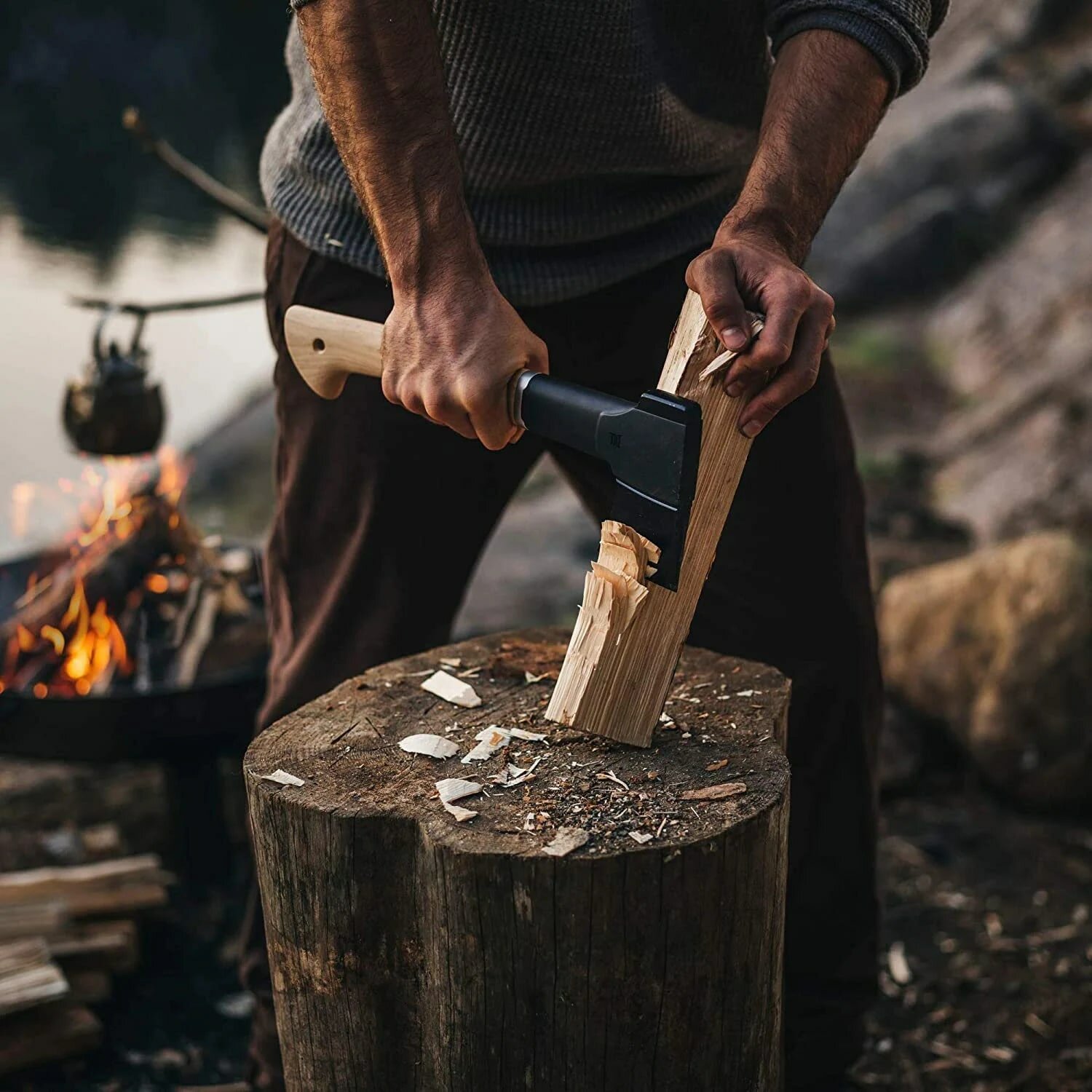 Надежное соединение лезвия и топорища. Лезвие зафиксировано в топорище и не сорвется при работе.