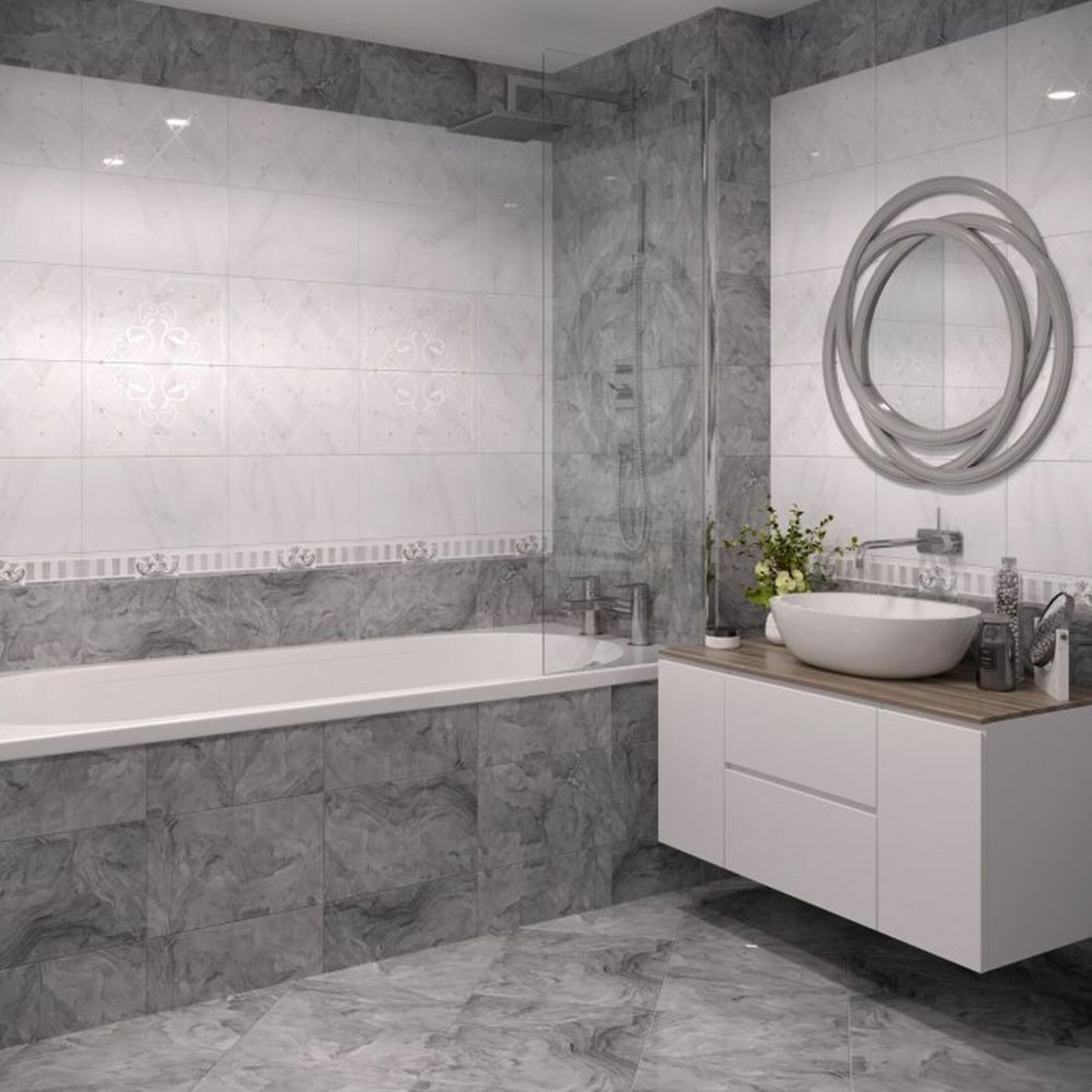 Керамический декор Unitile Life используется для облицовки стен в ванной комнате, душевой, оформления кухонного фартука.