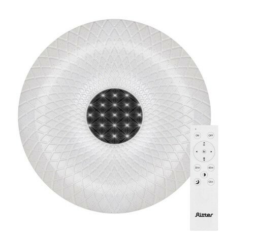 Потолочная люстра Ritter DIAMOND - не просто осветительный прибор, но и самостоятельный элемент интерьерного дизайна. Благодаря рельефному геометрическому узору и яркому свету диодов лампа сияет подобно бриллианту, а эффект звездного неба придает освещению дополнительную романтику и шарм.