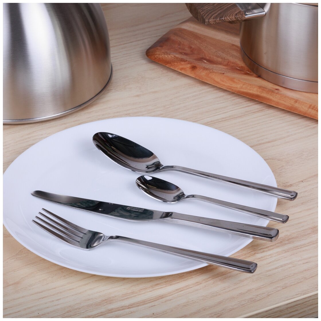 | Комплектация | 6 столовых вилок, 6 столовых ложек, 6 чайных ложек, 6 столовых ножей |