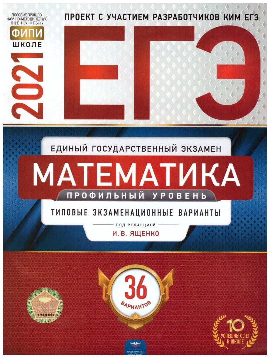 ЕГЭ-2021. Математика. Профильный уровень. Типовые экзаменационные варианты. 36 вариантов (Ященко Иван Валериевич, Высоцкий Иван Ростиславович, Коновалов Евгений Александрович); Национальное образование, 2020