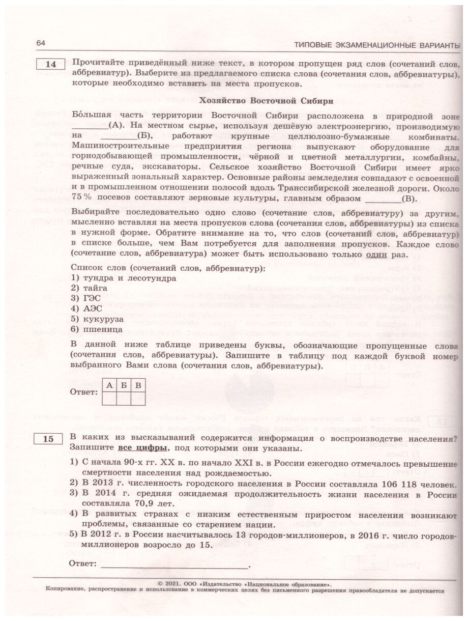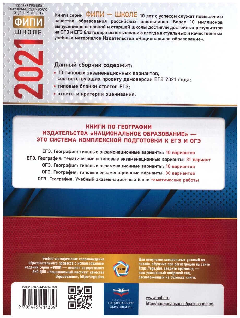 - 10 типовых экзаменационных вариантов, составленных в соответствии с проектом демоверсии КИМ ЕГЭ по географии 2021 года;