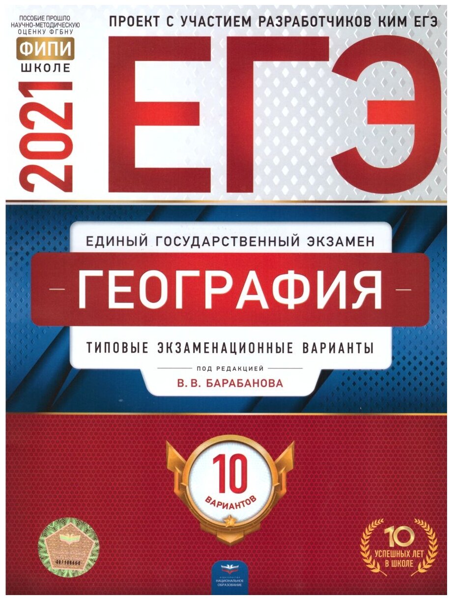 ЕГЭ 2021 География. Типовые экзаменационные варианты. 10 вариантов (Барабанов Вадим Владимирович, Дюкова Светлана Евгеньевна, Амбарцумова Элеонора Мкртычевна); Национальное образование, 2021