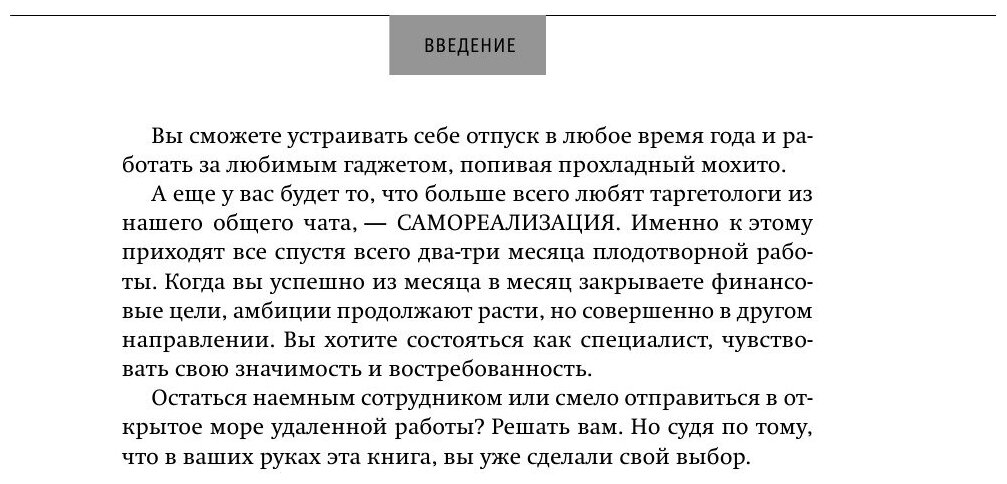 Таргетолог, работа удаленно....много слышала об этом в последнее время, но привычный офлайн, стандартный режим работы казался ближе и понятнее. Автор данной книги доходчиво объяснил как можно заработать не покидая квартиры, не имея офиса и в целом что такое таргетинг. Благодарю за информацию, которая сейчас для меня является актуальной!