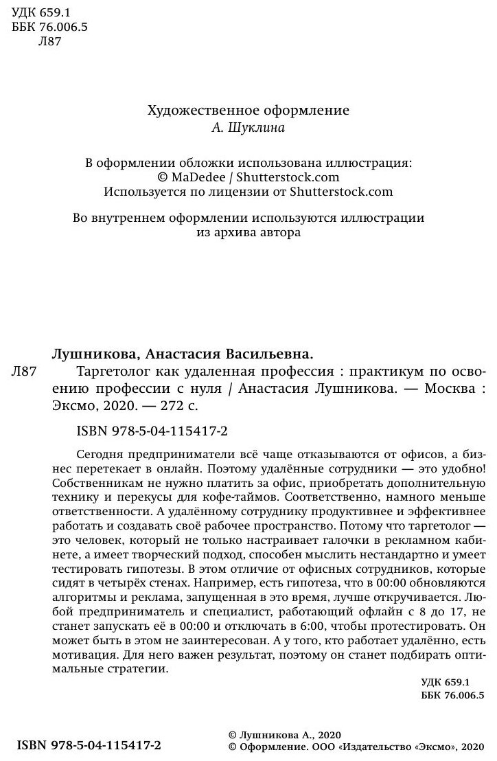 Таргетолог как удаленная профессия. Практикум по освоению профессии с нуля (Лушникова А.); ООО "Издательство "Эксмо", 2020