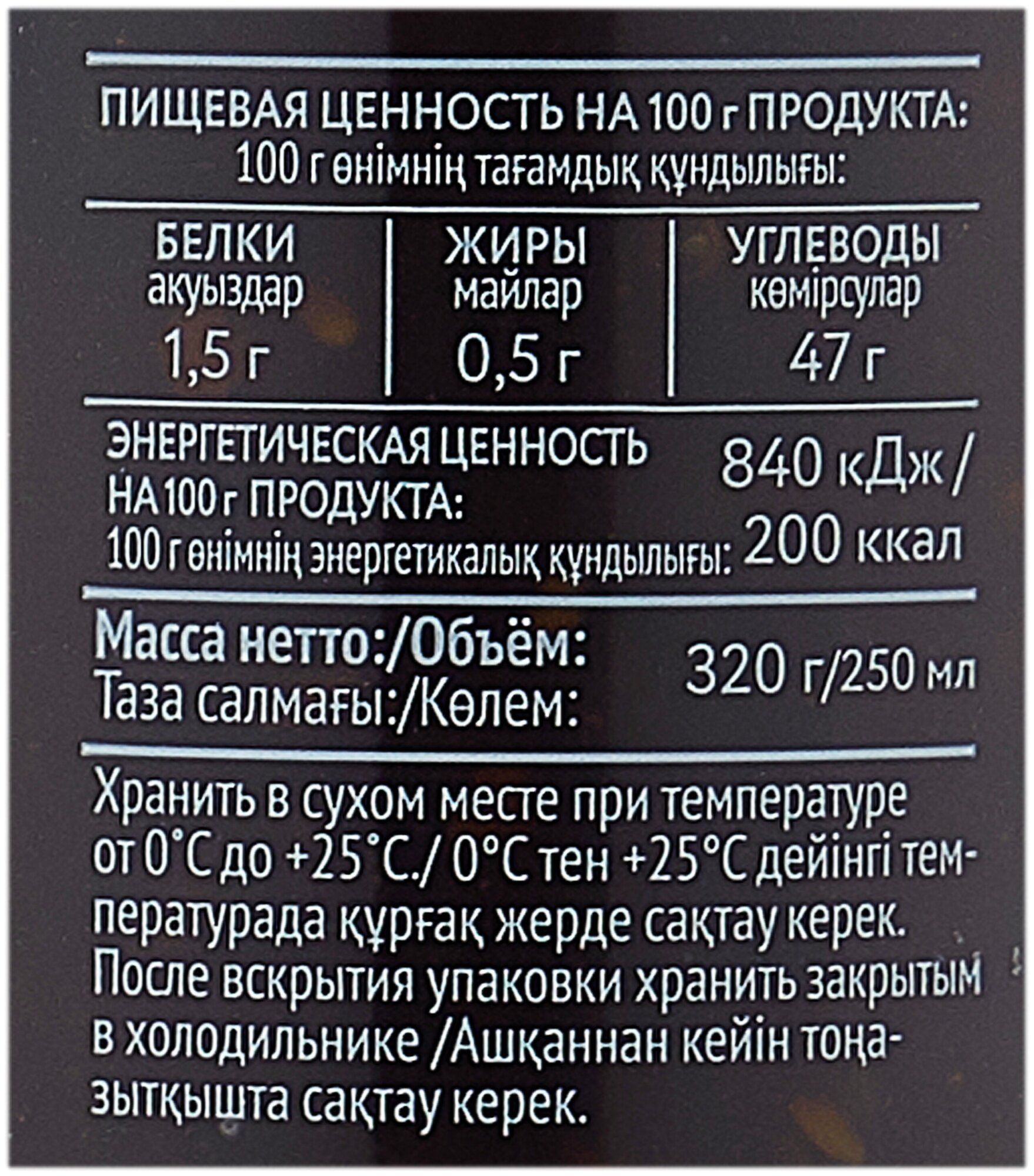 | Условия хранения | хранить в сухом месте. После вскрытия упаковки хранить закрытым в холодильнике |